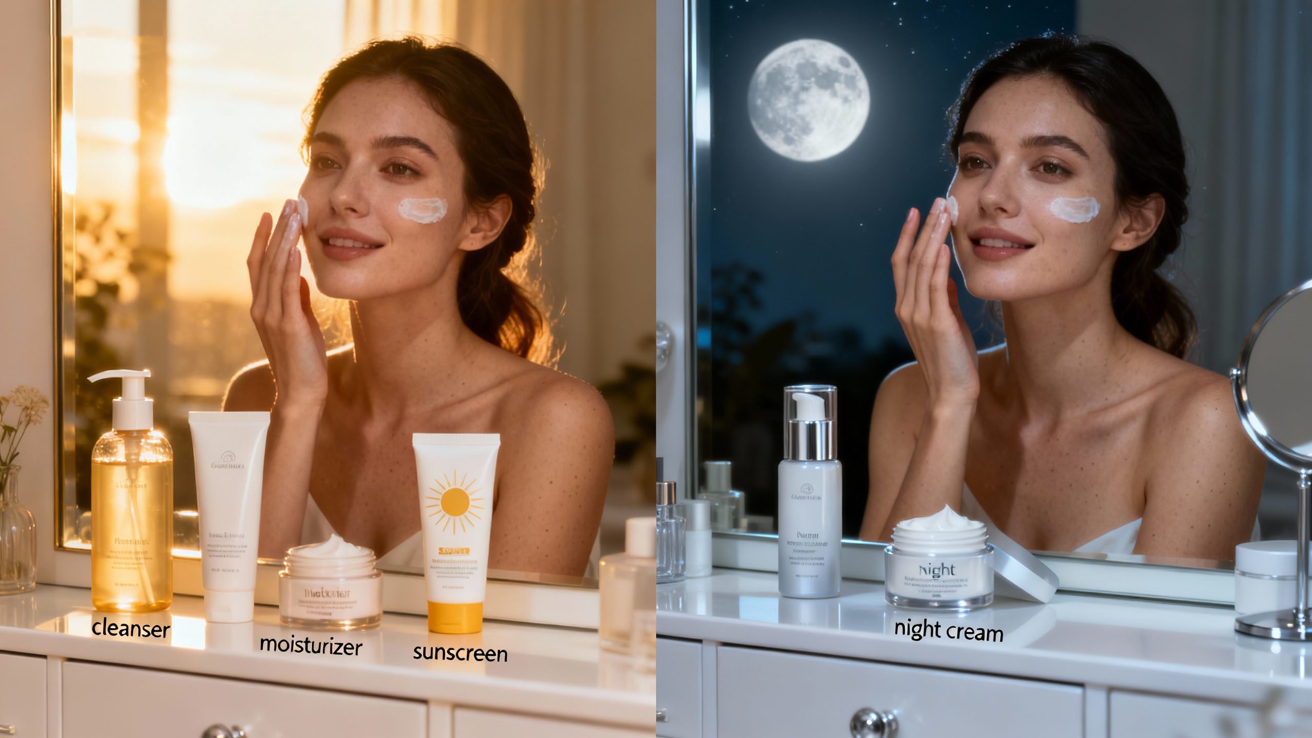 The difference also lies in product choice and layering. Protective products like sunscreen belong in the morning, while treatments that support renewal are better suited for night use. Using the right routine at the right time helps the skin function more efficiently.