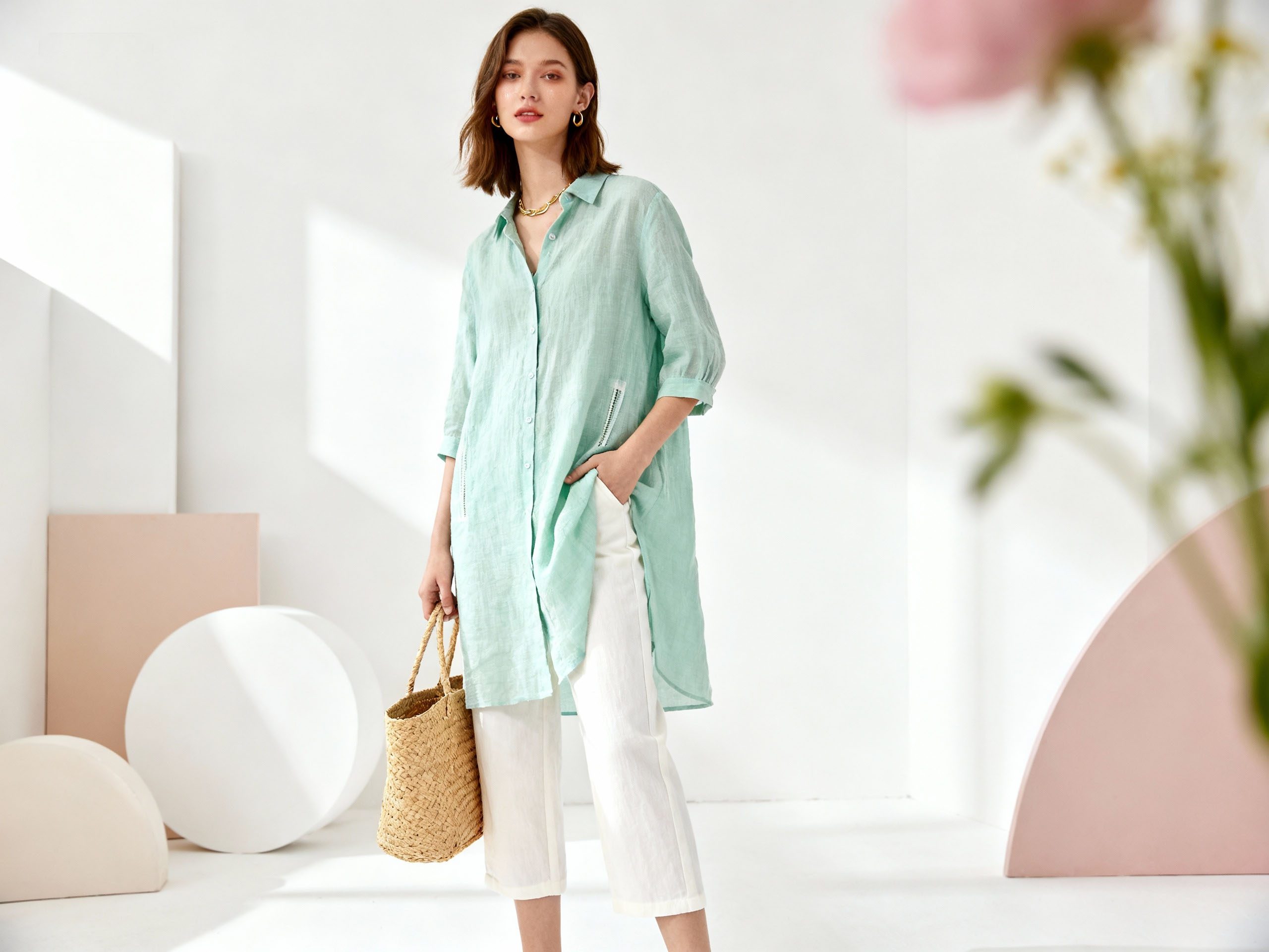 One of linen’s standout qualities is its lightweight feel, making it ideal for spring clothing that needs to stay airy without feeling flimsy. Although linen is light, it is also durable and strong, ensuring comfort without sacrificing longevity.